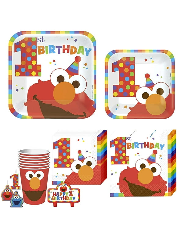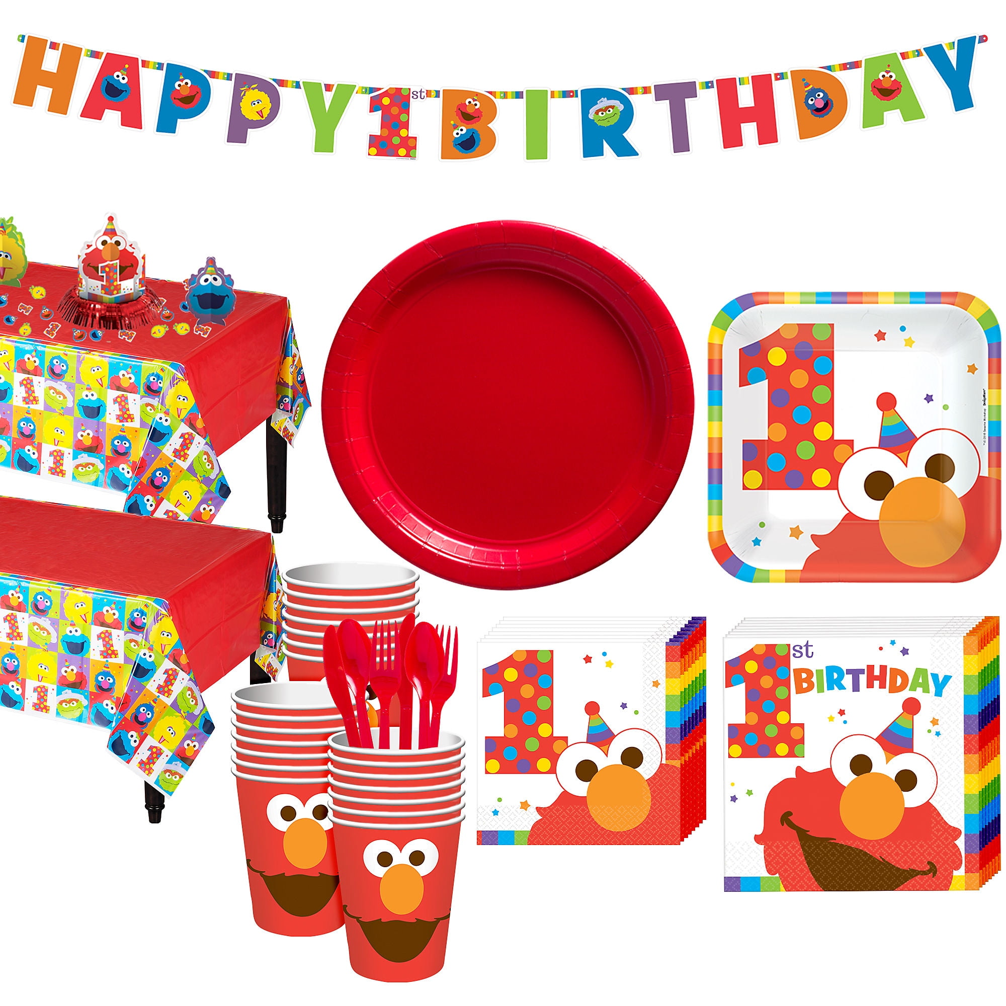 1st Birthday Elmo Party Kit For 32 Guests With Table Decorating Kit And Banners Walmart Com